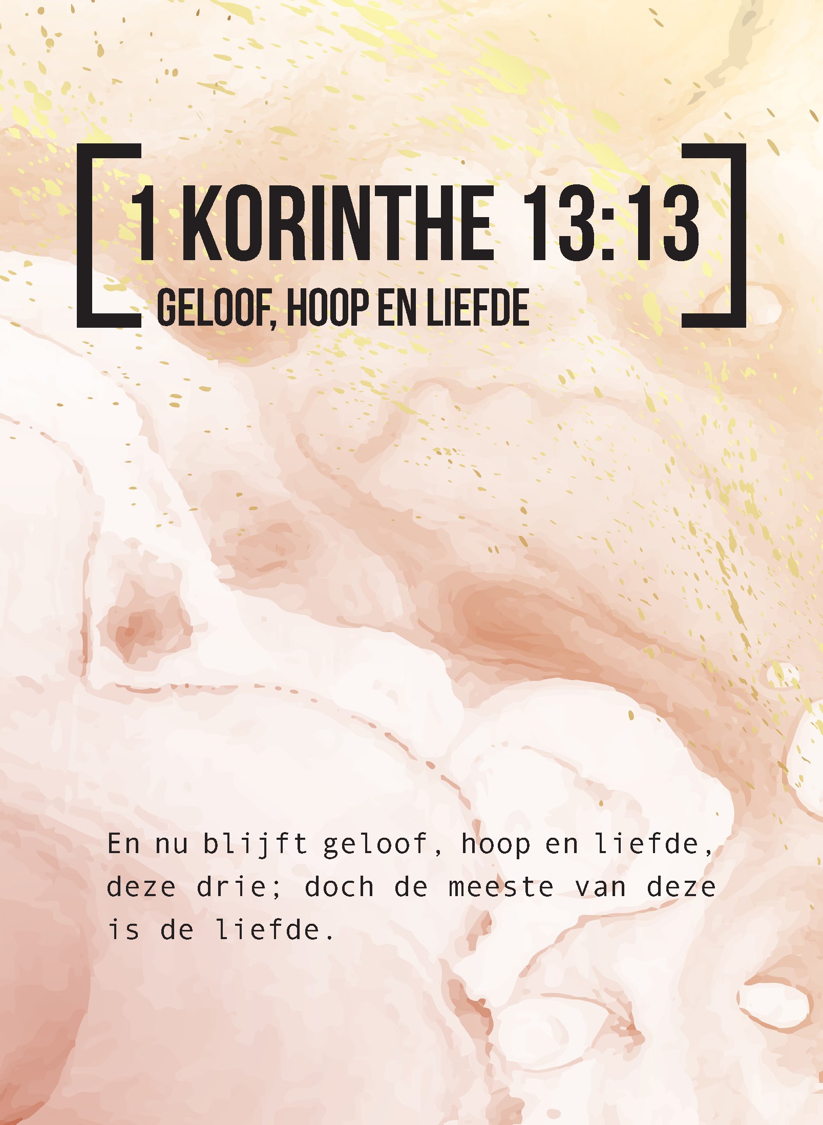 1 Korinthe 13:13: ‘En nu blijft geloof, hoop en liefde, deze drie; doch de meeste van deze is de liefde.’.’ (SV)