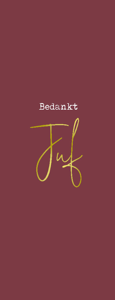 Luxe boekenlegger met de tekst: ‘Bedankt juf’.