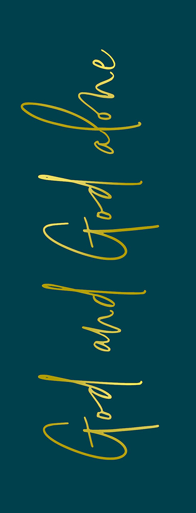 Luxe boekenlegger met de tekst: ‘God and God alone’.