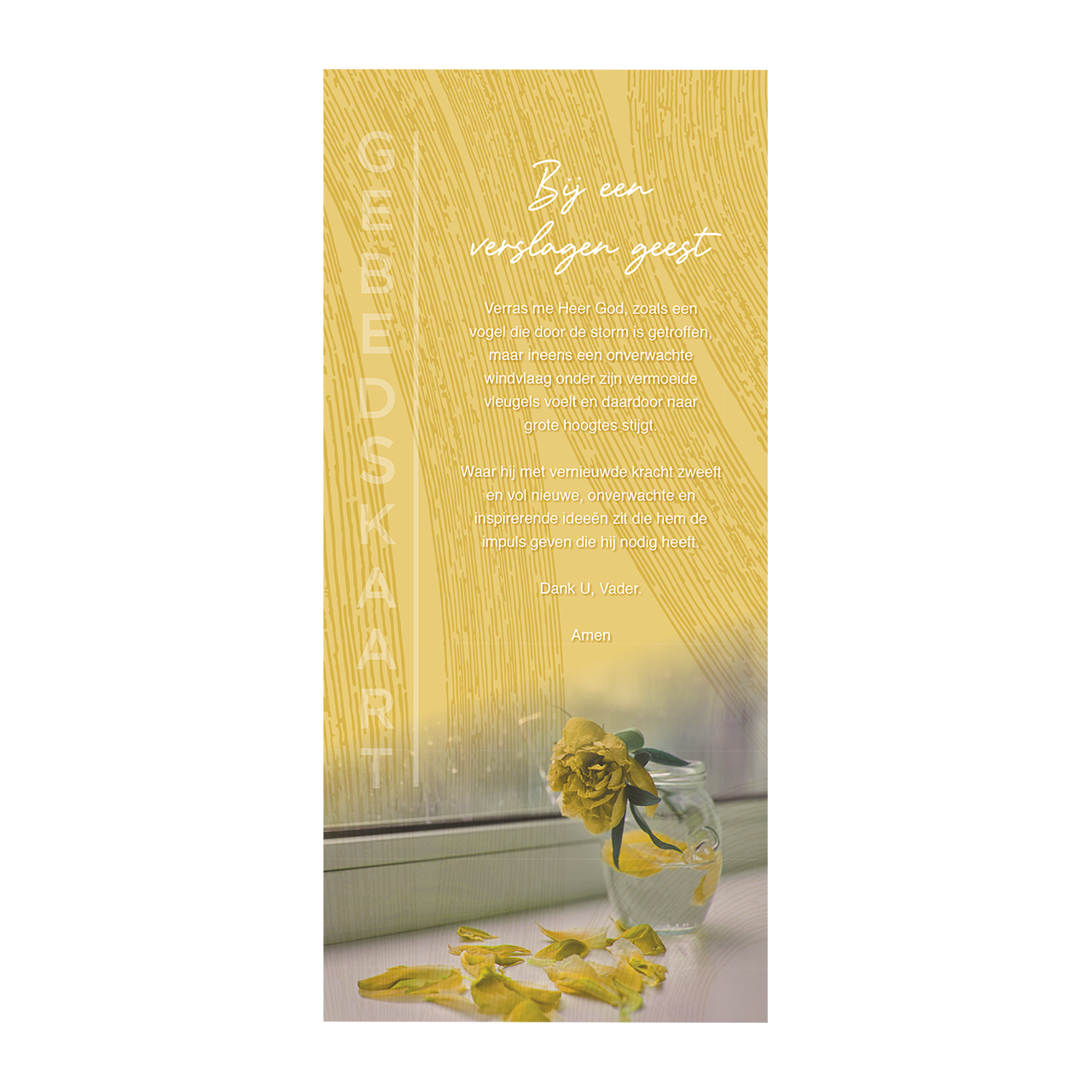 Deze inspirerende gebedskaart is een betekenisvol cadeau voor iedereen die door een moeilijke tijd gaat of zich neerslachtig voelt. Met dit gebed breng je hoop en vertrouwen op God tot uiting. Een prachtig gebaar van bemoediging en troost voor wie het nodig heeft.