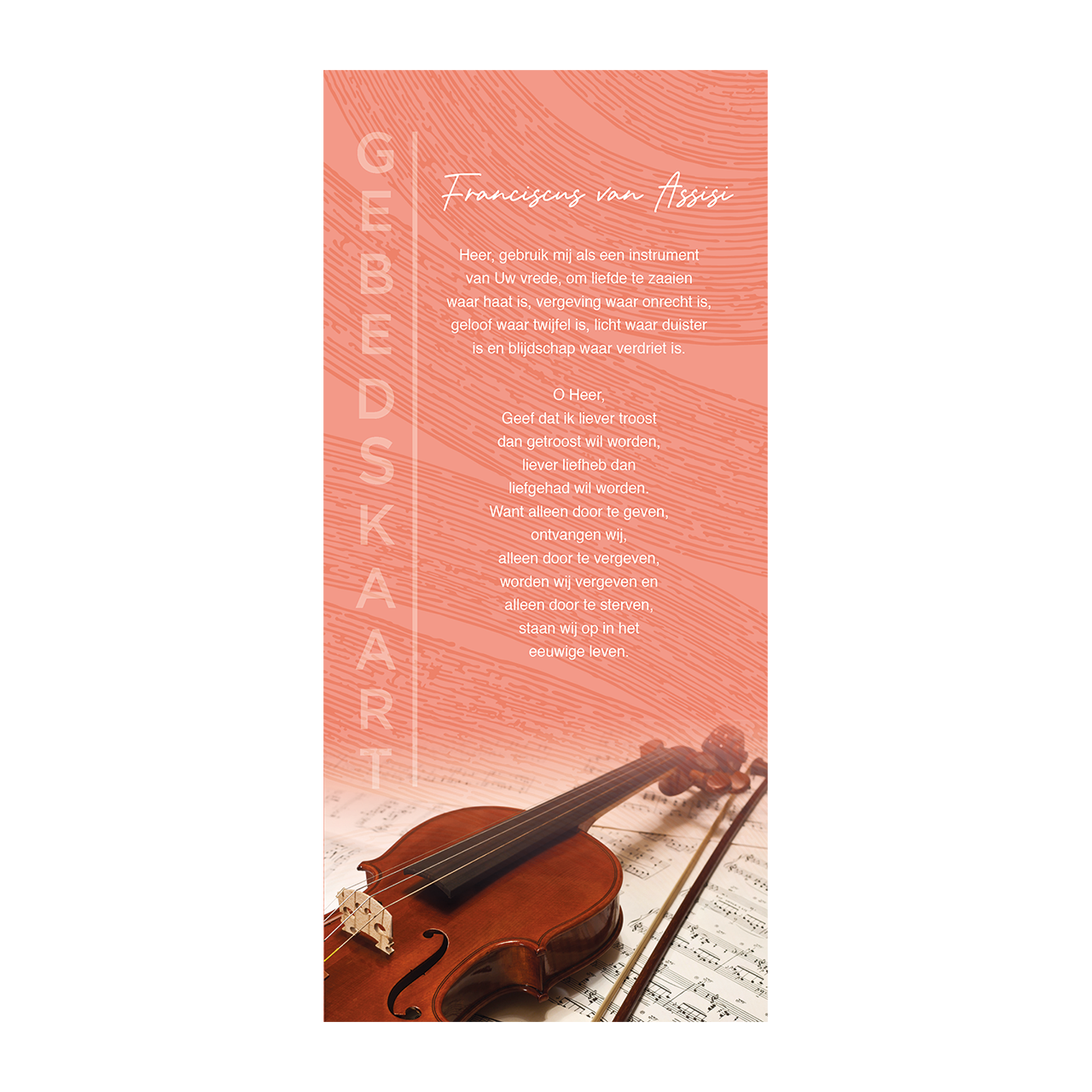 Deze gebedskaart bevat Assisi’s inspirerende gebed, waarin onbaatzuchtigheid en naastenliefde centraal staan. Dit tijdloze gebed moedigt aan om te geven in plaats van te ontvangen. Een betekenisvolle boodschap voor iedereen die streeft naar liefde en compassie.