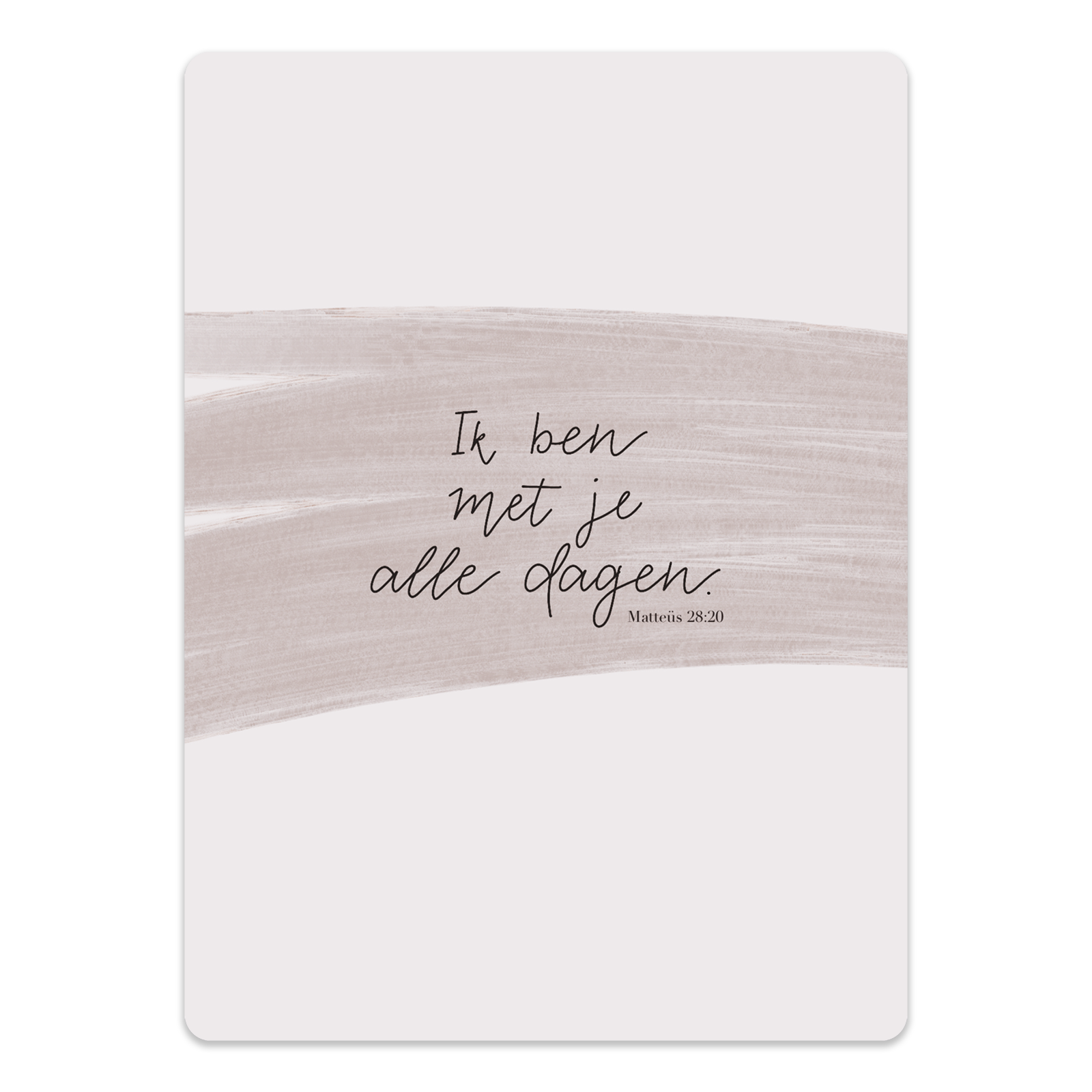 Cadeaubord met de inspirerende tekst ‘Ik ben met je alle dagen’ uit Matteüs 28:20. Een betekenisvol en stijlvol decoratief bord, perfect om neer te zetten of als bemoedigend cadeau voor elke gelegenheid.
