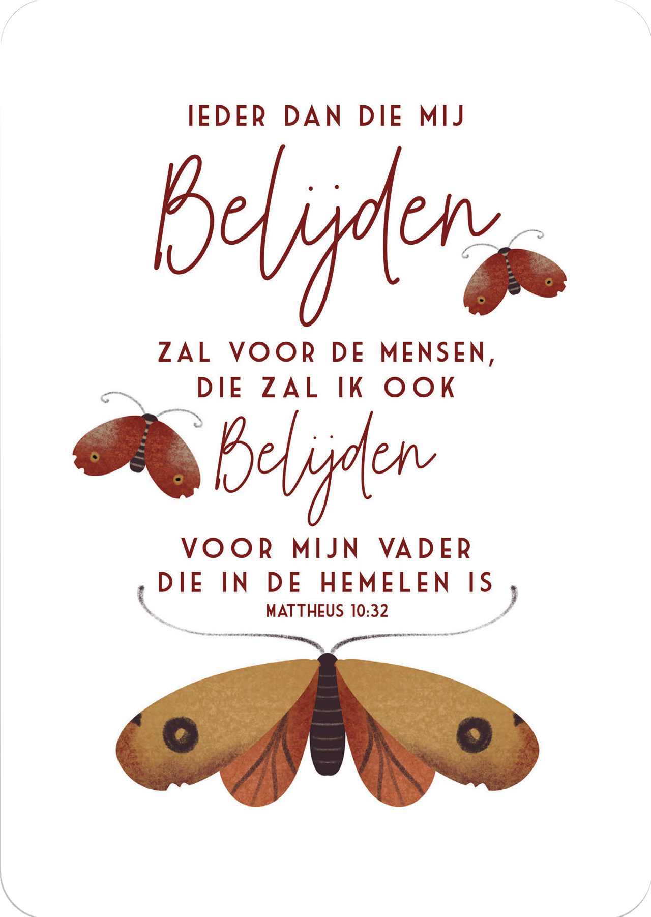 Tekst: ‘Ieder dan die Mij belijden zal voor de mensen, die zal Ik ook belijden voor Mijn Vader die in de hemelen is. Mattheus 10:32’