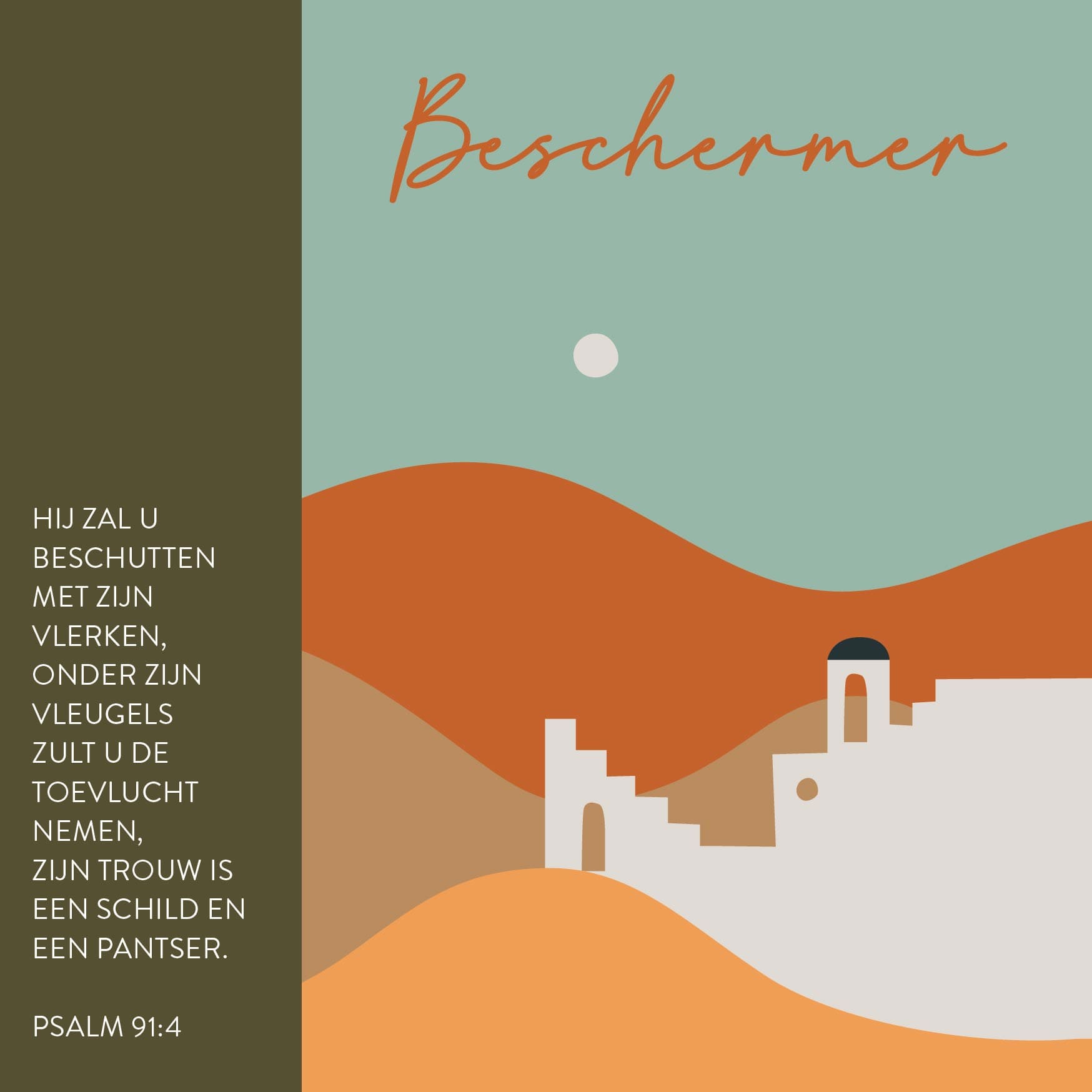 Christelijke enkele kaart van ca. 15 x 15 cm met de tekst: ‘Hij zal u beschutten met Zijn vlerken, onder Zijn vleugels zult u de toevlucht nemen, Zijn trouw is een schild en een pantser.‘ De kaart kan aan de blanco achterzijde beschreven worden. Wordt geleverd met envelop. Artikelnummer: MA56021