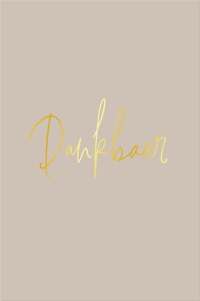 Luxe kaart uit de serie ‘Schrijven is Goud’, bedrukt met prachtig goudfolie. Tekst: ‘Dankbaar’