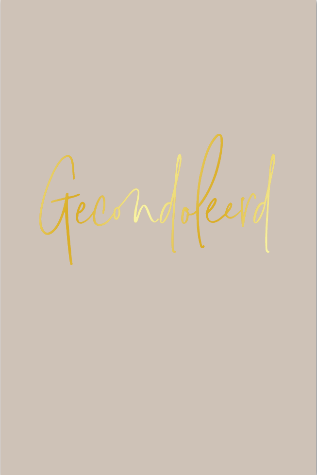 Luxe condoleance kaart uit de serie ‘Schrijven is Goud’, bedrukt met prachtig goudfolie.