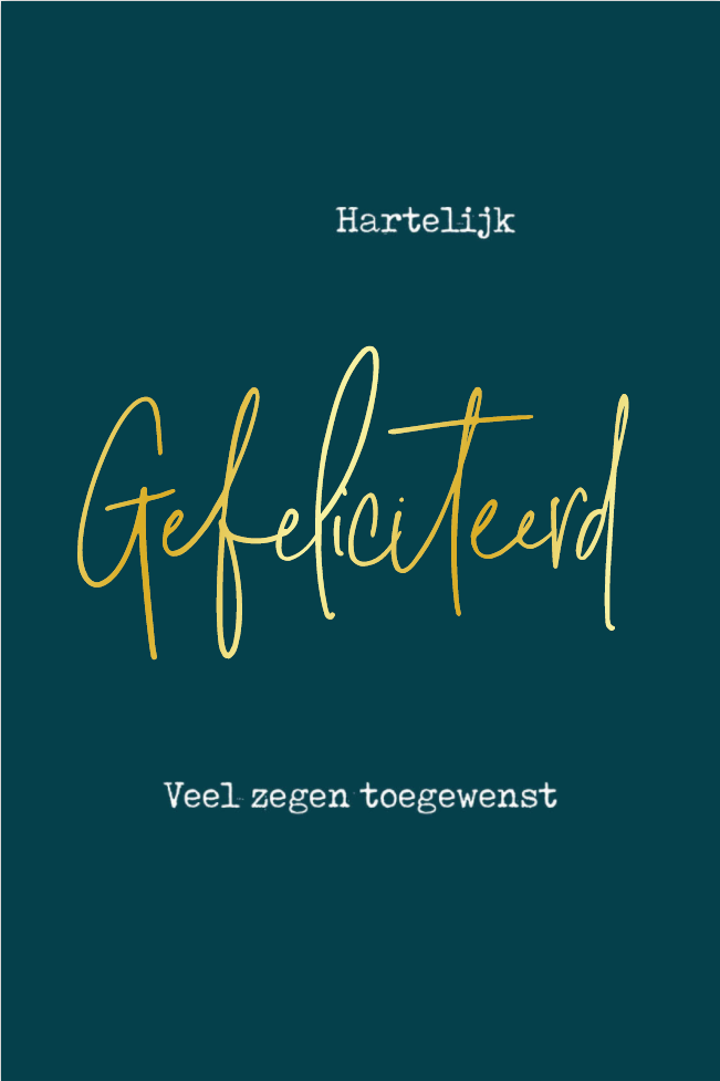 Luxe felicitatiekaart uit de serie ‘Schrijven is Goud’, bedrukt met prachtig goudfolie.