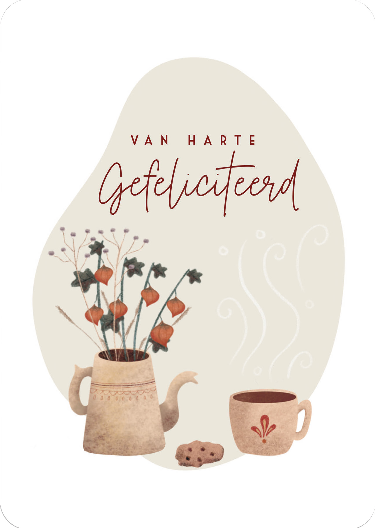 Deze kaart op A6-formaat wordt geleverd met envelop. De afgeronde hoeken geeft de kaart een prettige, vriendelijke uitstraling.