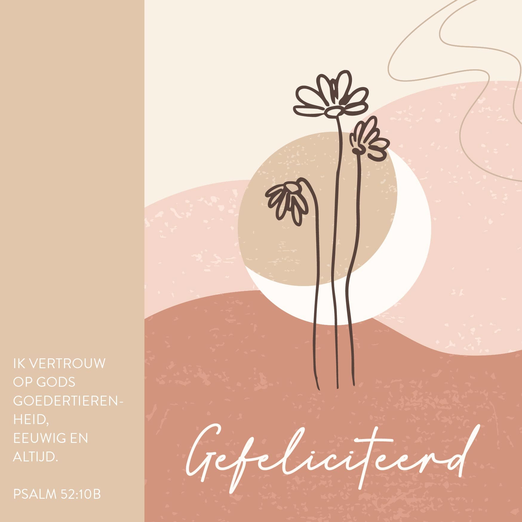 Christelijke enkele kaart van ca. 15 x 15 cm met de tekst: ‘Ik vertrouw op Gods goedertierenheid, eeuwig en altijd.‘ De kaart kan aan de blanco achterzijde beschreven worden. Wordt geleverd met envelop. Artikelnummer: MA56015