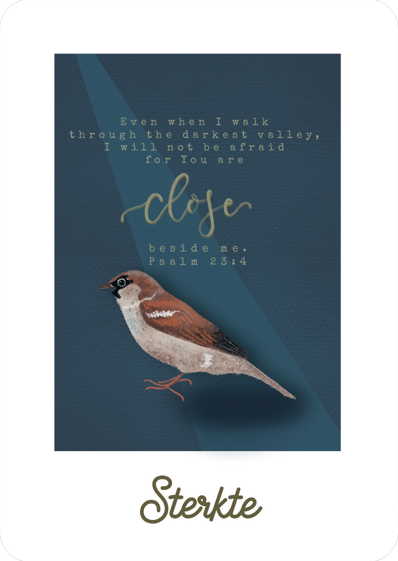 Tekst: ‘”Even when I walk through the darkest valley, I will not be afraid, for You are close beside me.” -Psalm 23:4. Sterkte’
