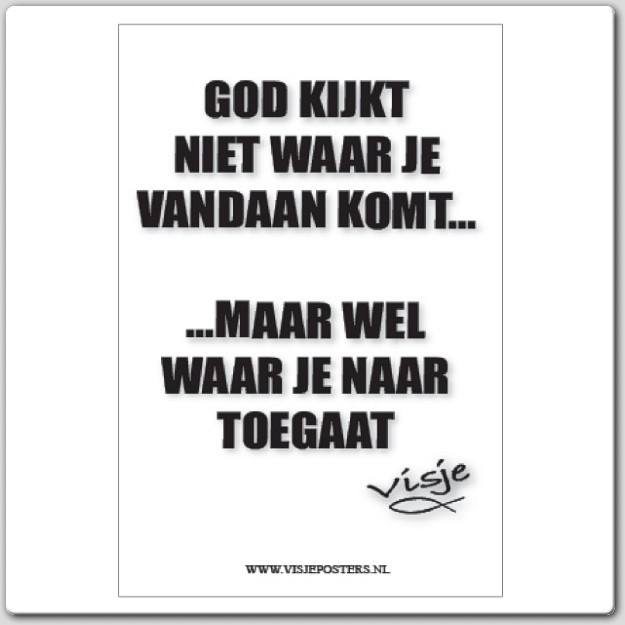 kaart Visje ‘God kijkt niet waar je vandaan komt’ Uitdeelkaarten met visje teksten. Deze kaarten hebben een niet-beschrijfbare achterkant.