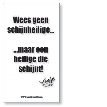 kaart Visje ‘Wees geen schijnheilige’ Uitdeelkaarten met visje teksten. Deze kaarten hebben een niet-beschrijfbare achterkant.