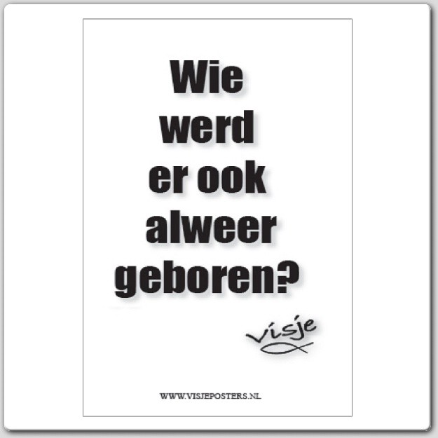 kaart Visje ‘Wie werd er ook alweer geboren?’ Uitdeelkaarten met visje teksten. Deze kaarten hebben een niet-beschrijfbare achterkant.