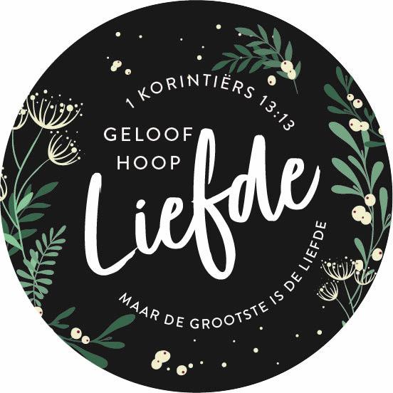 De kaart draagt de inspirerende tekst "Geloof, hoop, liefde maar de grootste is de liefde" uit 1, een perfecte boodschap voor de feestdagen.