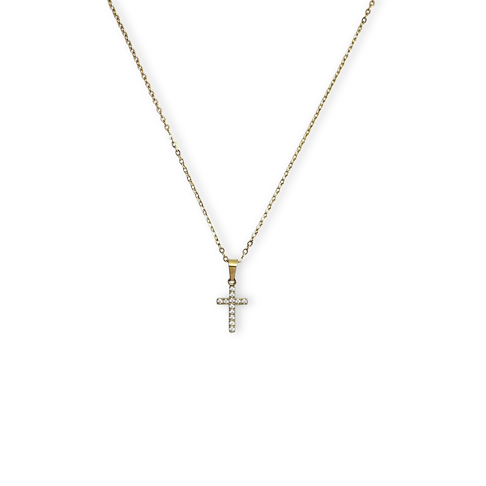 Prachtige ketting met extra klein kruisje van zirkonia. Mooi om deze ketting met hét symbool van het christelijk geloof cadeau te geven aan een geliefd kind. Verkrijgbaar in goud- en zilverkleur.