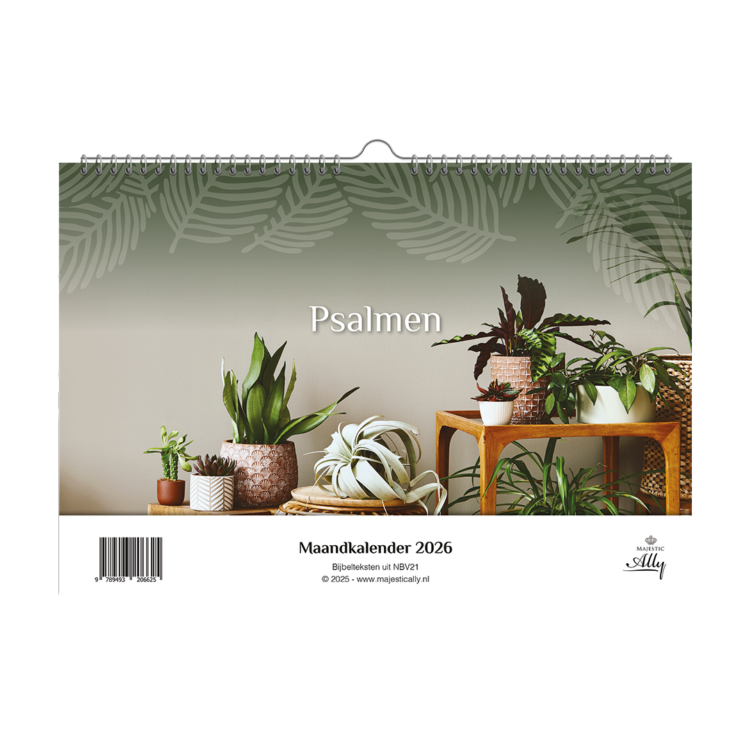 Maandkalender met elke maand een prachtig vers uit de Psalmen, gecombineerd met een ontwerp vol planten.