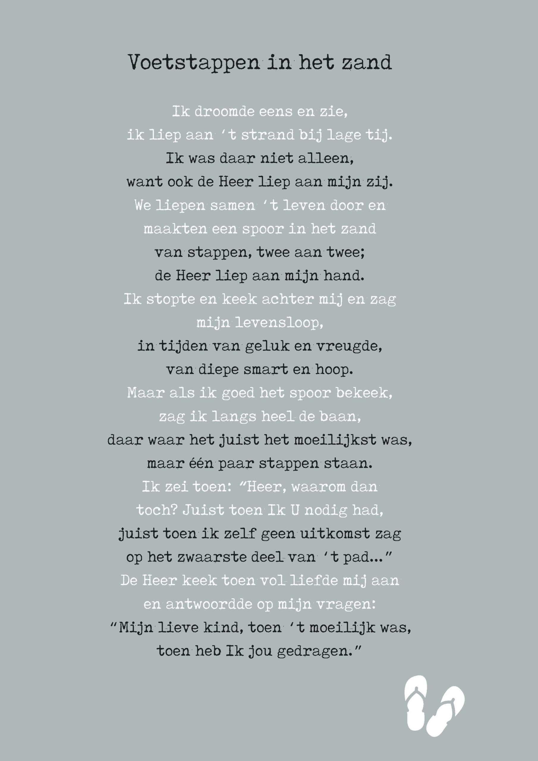 Mooi bord met de bekende tekst van het gedicht ‘Voetstappen’