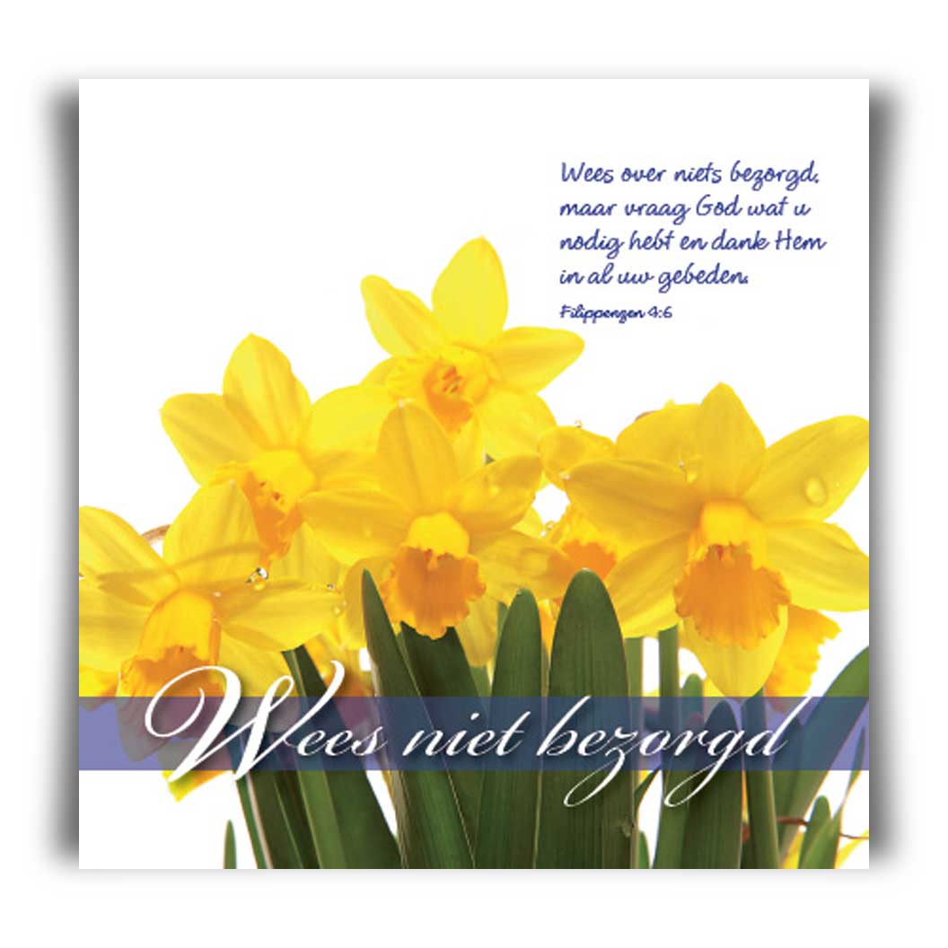 Christelijke vierkante minikaartjes (90 bij 90 mm) met natuurafbeeldingen en bijbelteksten.