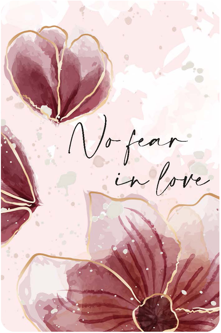 Leuk minikaartje met de tekst ‘No fear in love’. Perfect om een persoonlijke boodschap toe te voegen aan je cadeau, of om een liefdevolle boodschap aan een geliefde te schrijven. De kaarten hebben een blanco achterzijde, zodat deze goed beschreven kan worden.