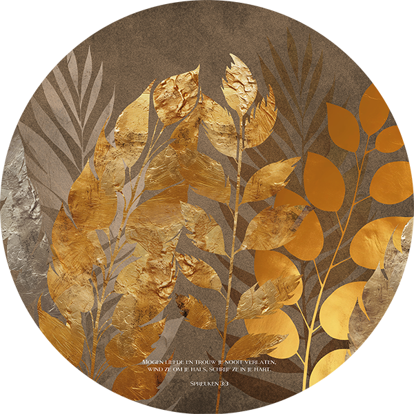Op deze cirkel staat de bijbeltekst uit Spreuken 3:3: ‘Mogen liefde en trouw je nooit verlaten,wind ze om je hals, schrijf ze in je hart.’