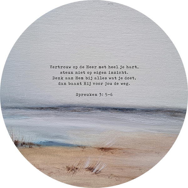 Op deze cirkel staat de bijbeltekst uit Spreuken 3:5-6: ‘Vertrouw op de HEER met heel je hart, steun niet op eigen inzicht. Denk aan Hem bij alles wat je doet, dan baant Hij voor jou de weg.’