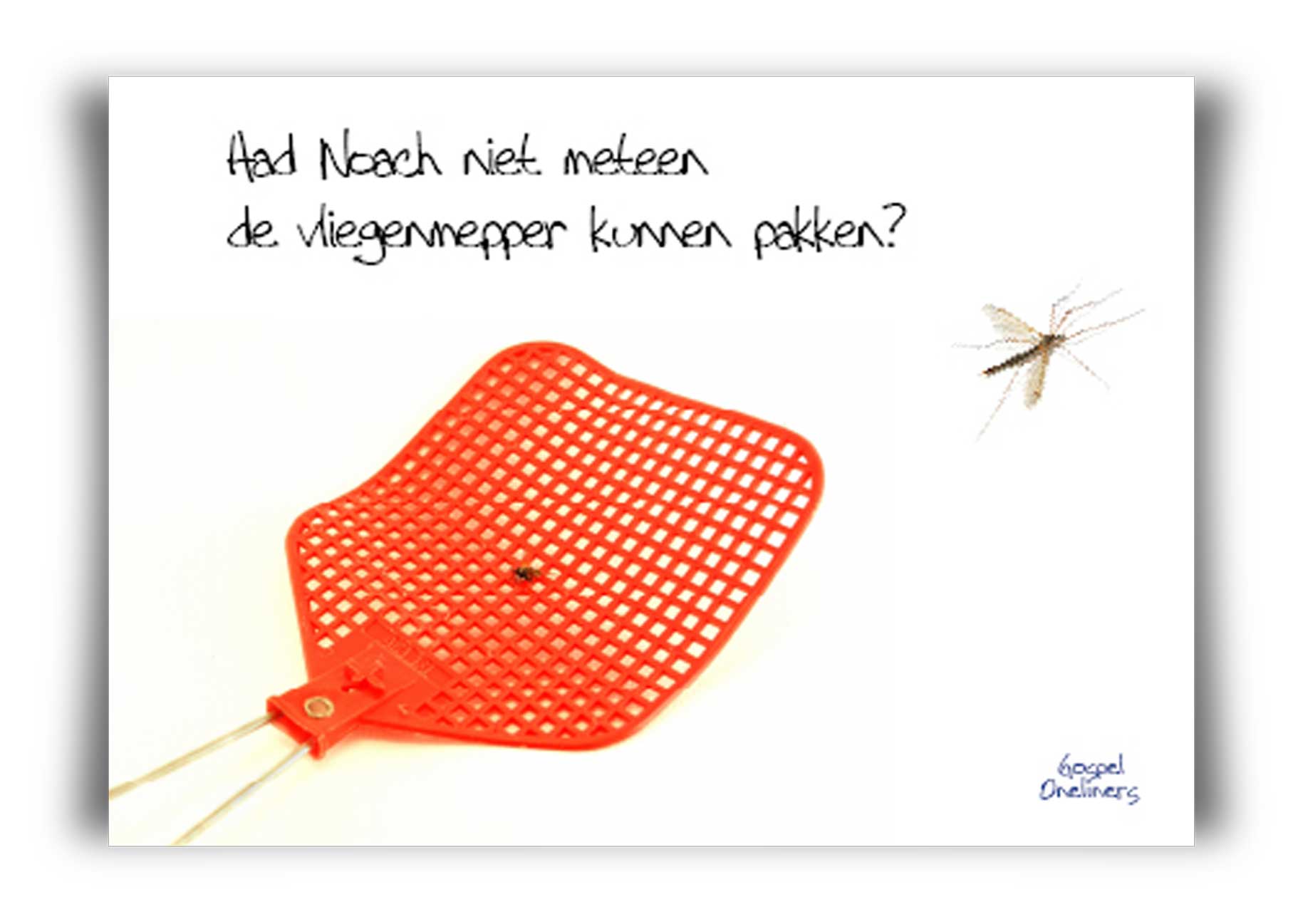 Prentbriefkaart ‘Had Noach niet gelijk even de vliegenmepper kunnen pakken?’