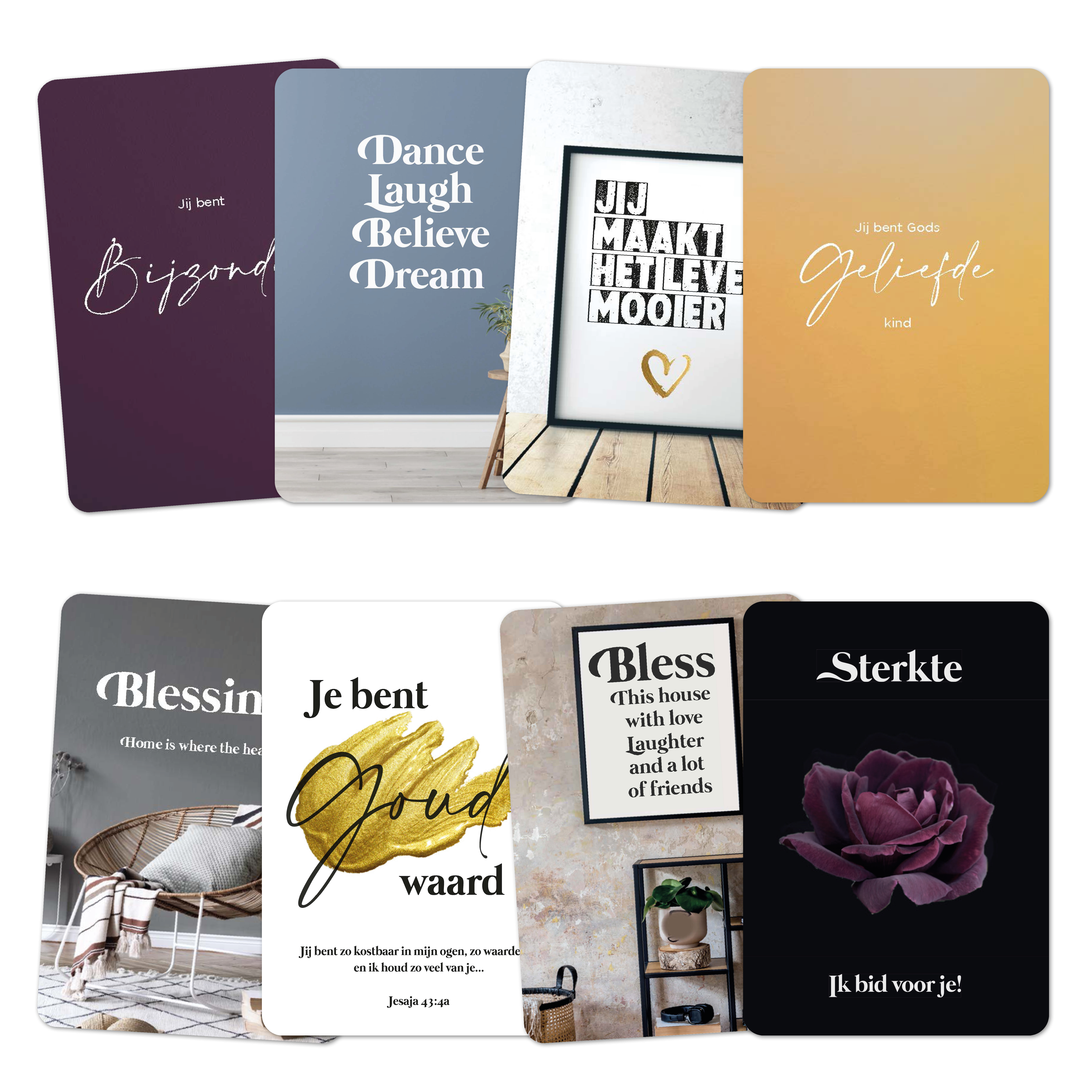 8 verschillende minikaartjes met afgeronde hoeken