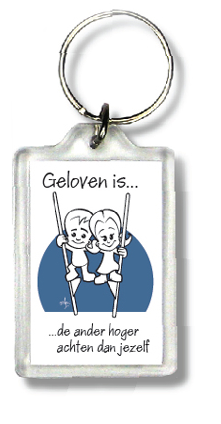 Sleutelhanger ‘Geloven is de ander hoger achten’