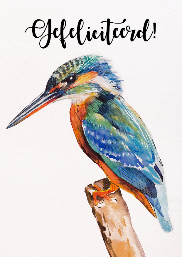 Leuke voordeelkaart met de tekst ‘Gefeliciteerd’. Deze kaart heeft een blanco, beschrijfbare achterkant.