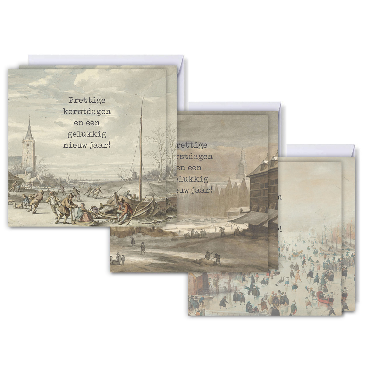 De kaarten zijn voorzien van sfeervolle schaatstaferelen geïnspireerd door oude meesters en dragen de boodschap: “Prettige Kerstdagen en een Gelukkig Nieuw Jaar”.