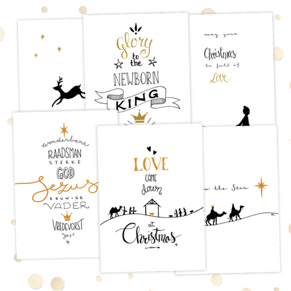 Voordeelpakje kerstkaarten ‘Golden Blessings 2’ – 6 stuks