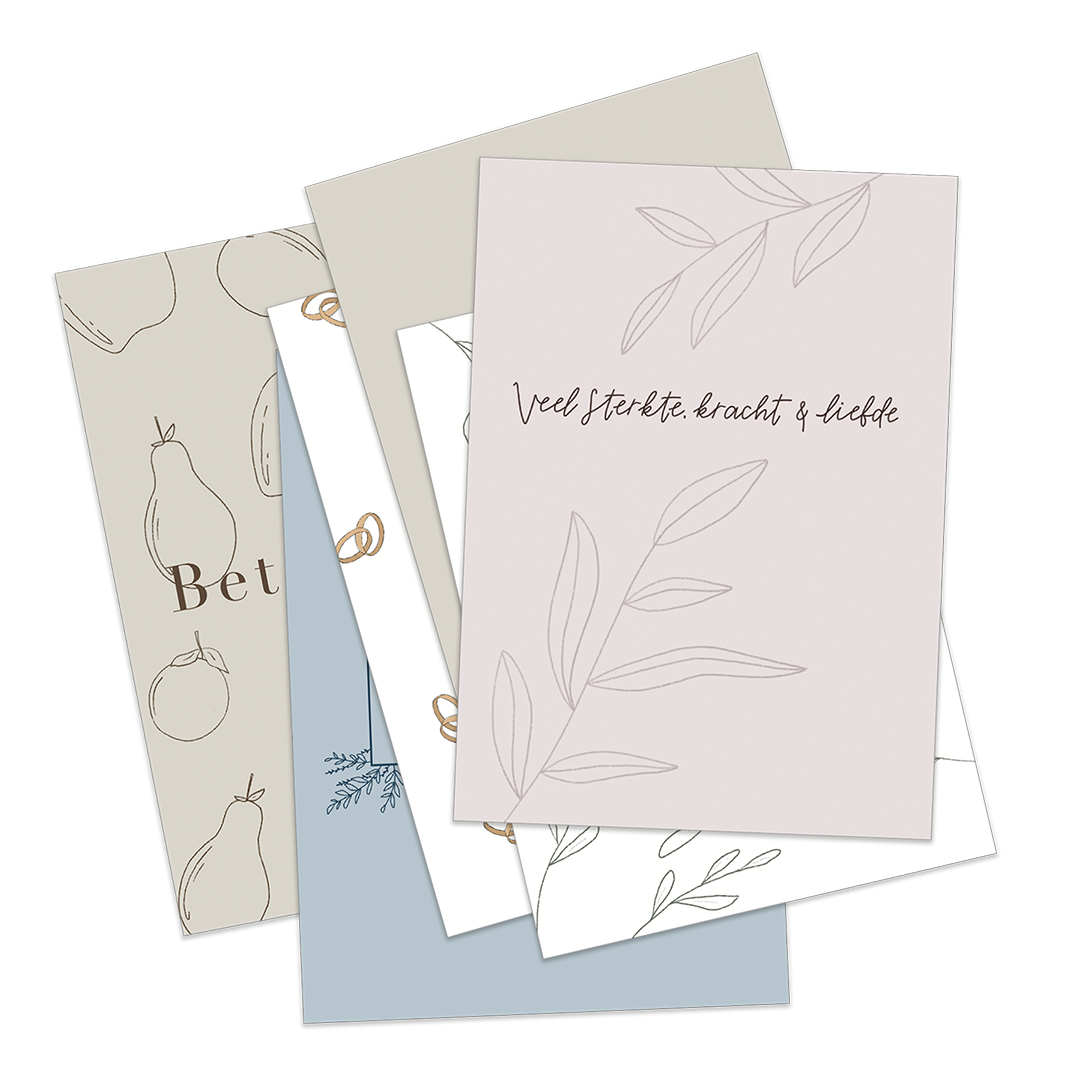 Ontdek het unieke voordeelpakje van de LVS-molen: 12 speciale wenskaarten om troost en bemoediging te bieden bij ziekte en overlijden. Deze set combineert algemene wenskaarten met inspirerende christelijke (Bijbel-)teksten.