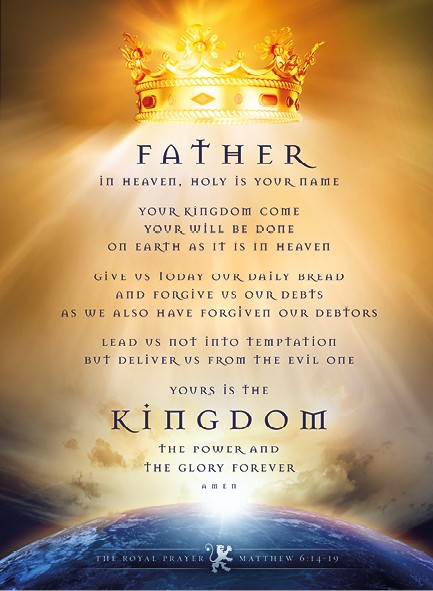 Wandbord met het gebed ‘Het onze Vader’ in het Engels.