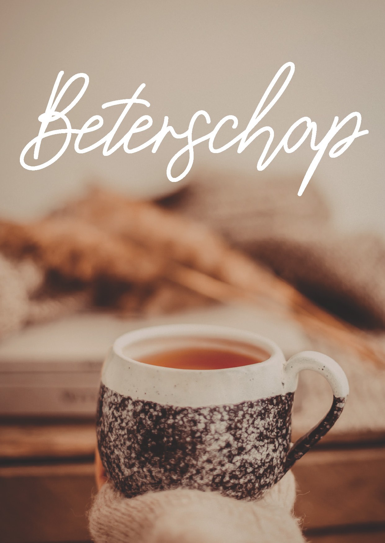 Christelijke dubbele kaart van ca 11×16 cm met de tekst: ‘Beterschap’
