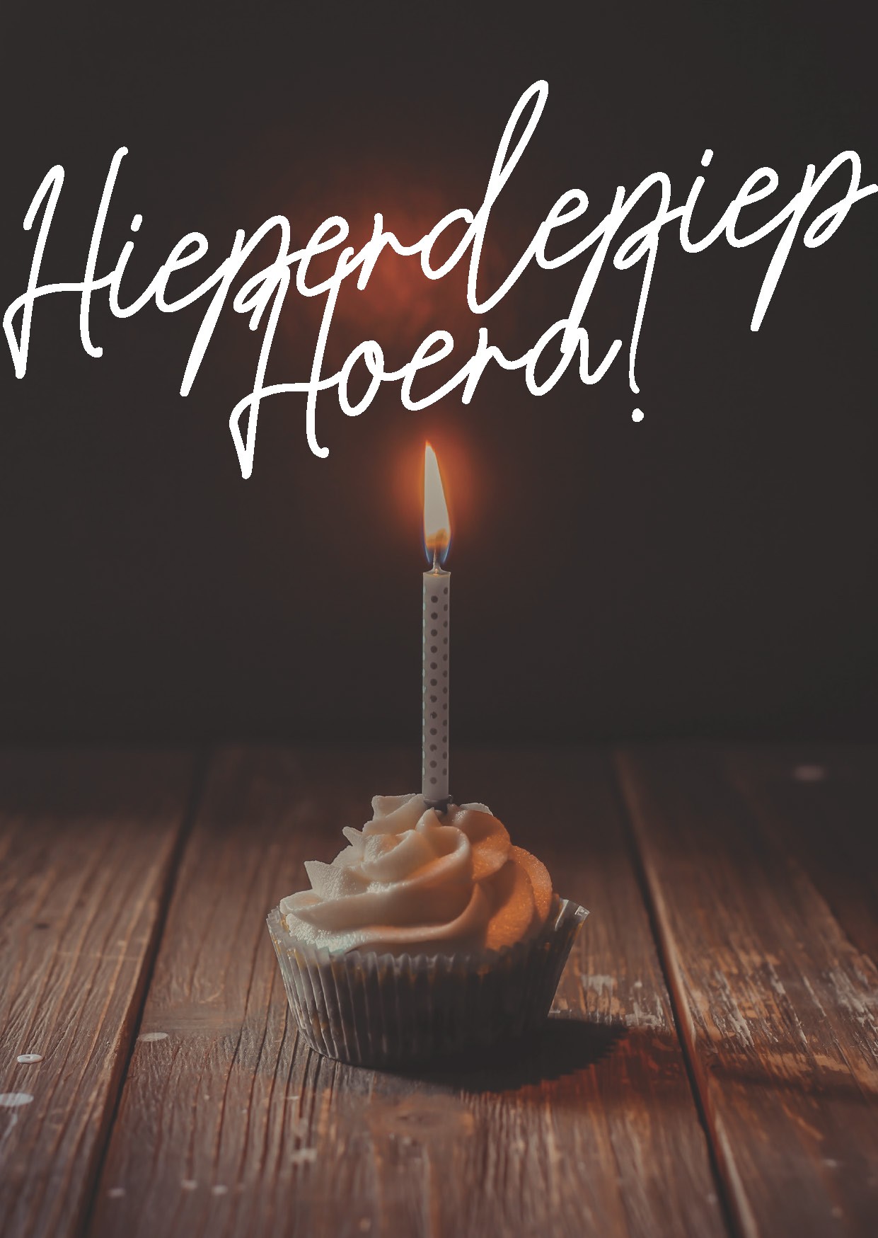 Christelijke dubbele kaart van ca 11×16 cm met de tekst: ‘Hieperdepeip Hoera!‘