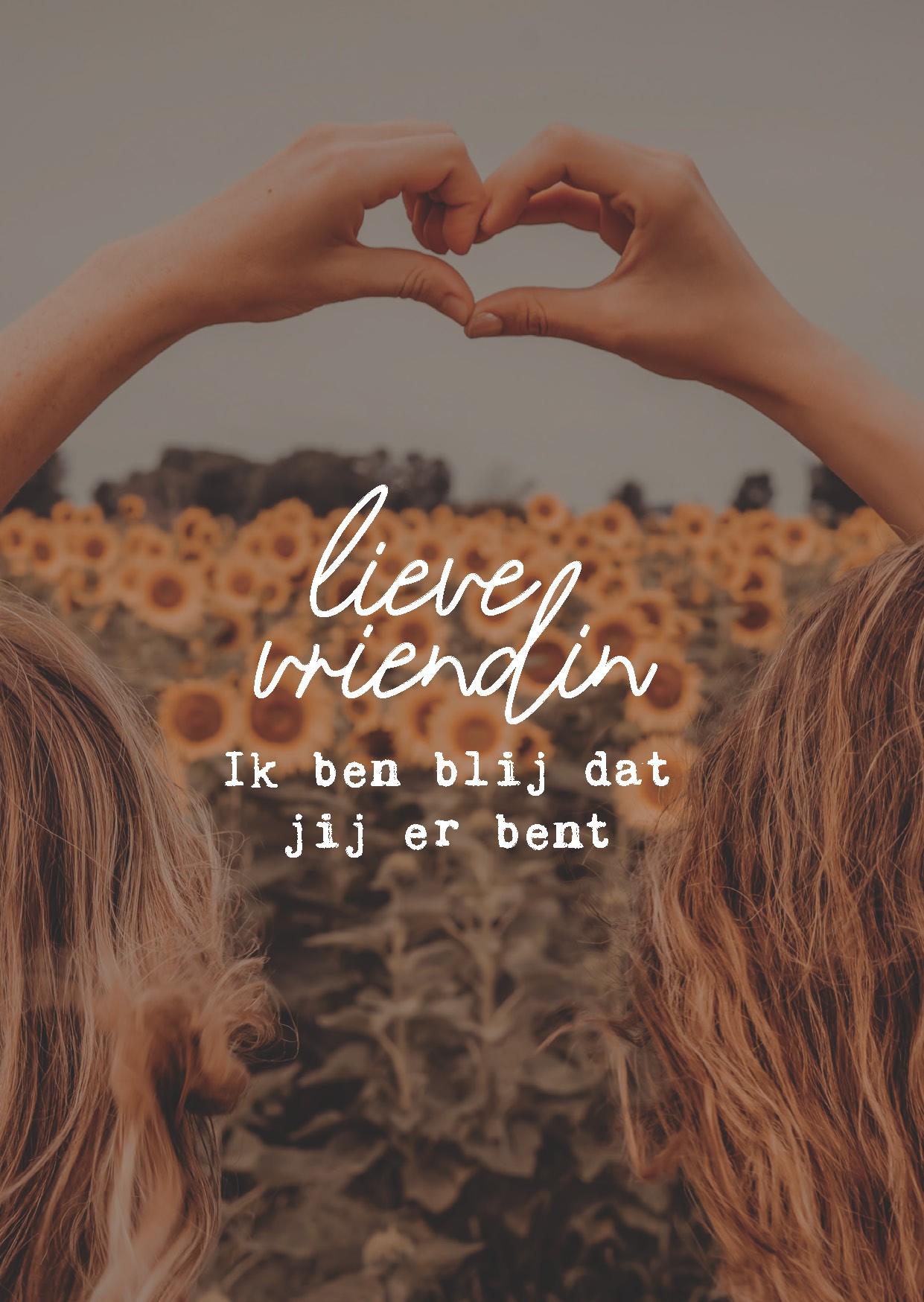 Christelijke dubbele kaart van ca 11×16 cm met de tekst: ‘Lieve vriendin, ik ben blij dat jij er bent’