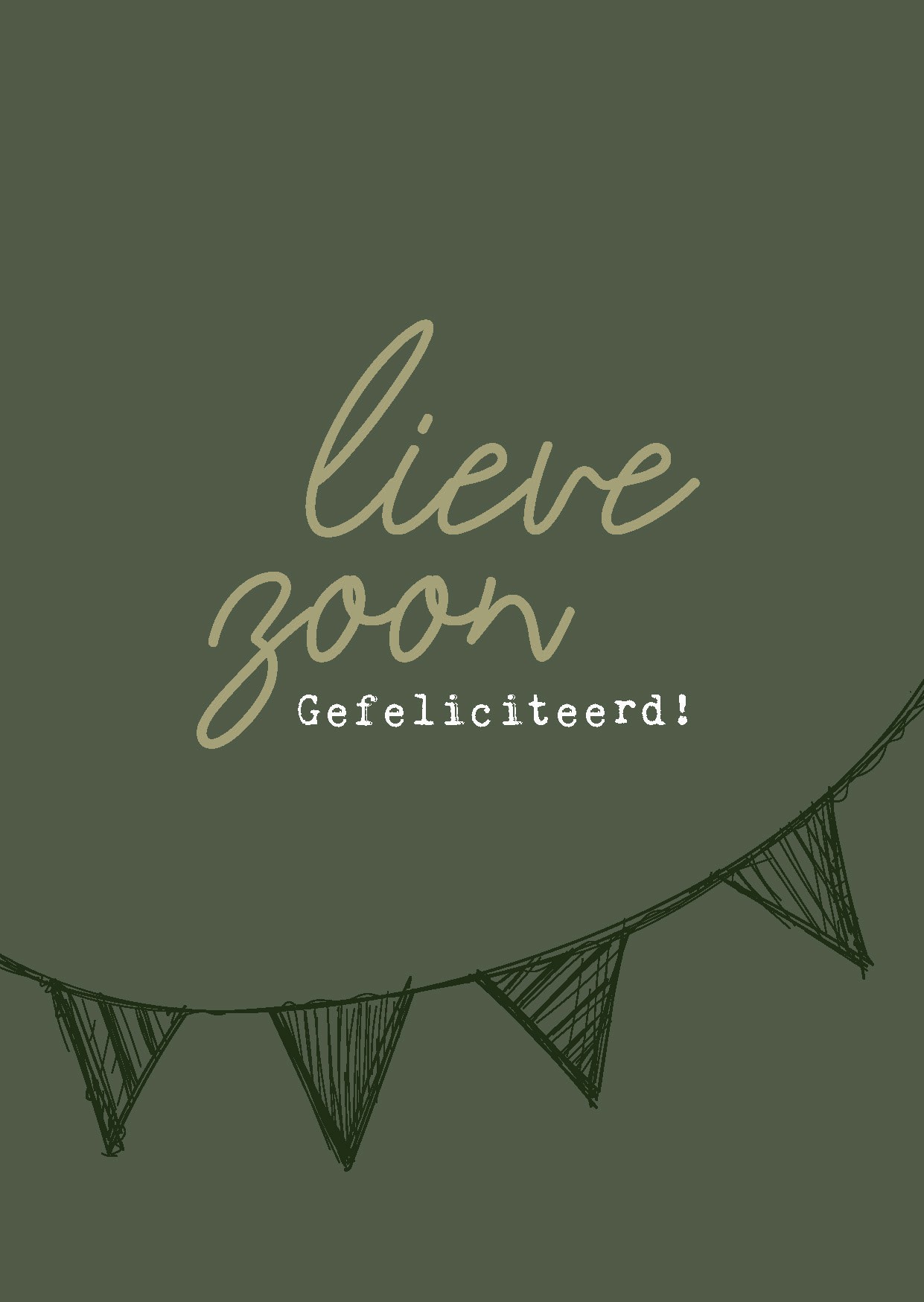 Christelijke dubbele kaart van ca 11×16 cm met de tekst: ‘Lieve zoon, gefeliciteerd’