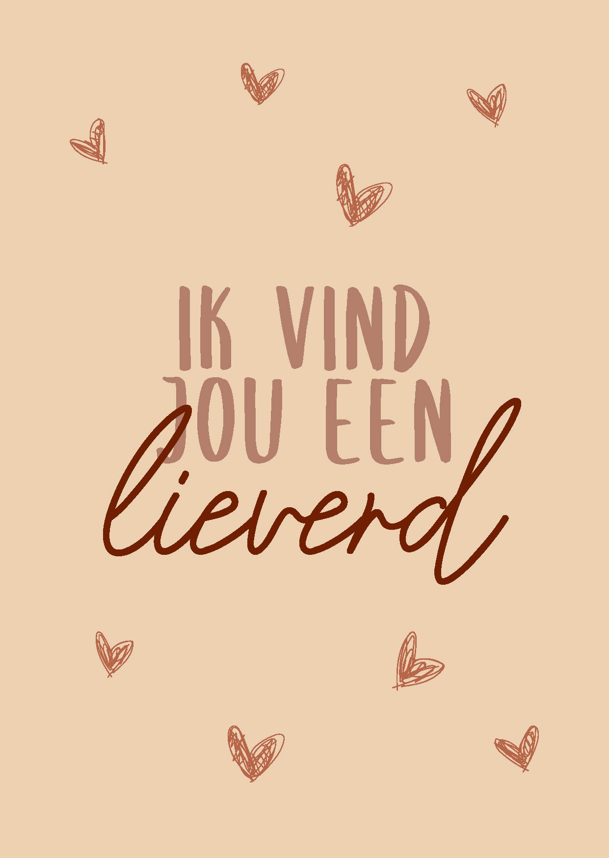 Christelijke dubbele kaart van ca 11×16 cm met de tekst: ‘Ik vind jou een lieverd‘