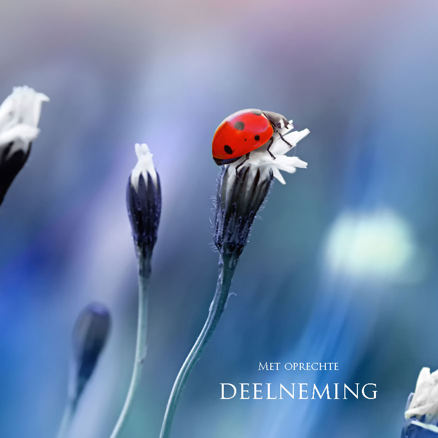 Deze vierkante, dubbele wenskaart (ca. 15 x 15 cm) is geschikt om te sturen bij een overlijden. Laat weten dat je meeleeft! Wordt geleverd met envelop.