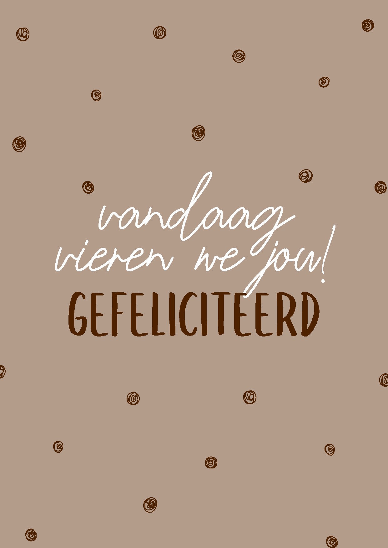 Christelijke dubbele kaart van ca 11×16 cm met de tekst: ‘Vandaag vieren we jou! Gefeliciteerd‘