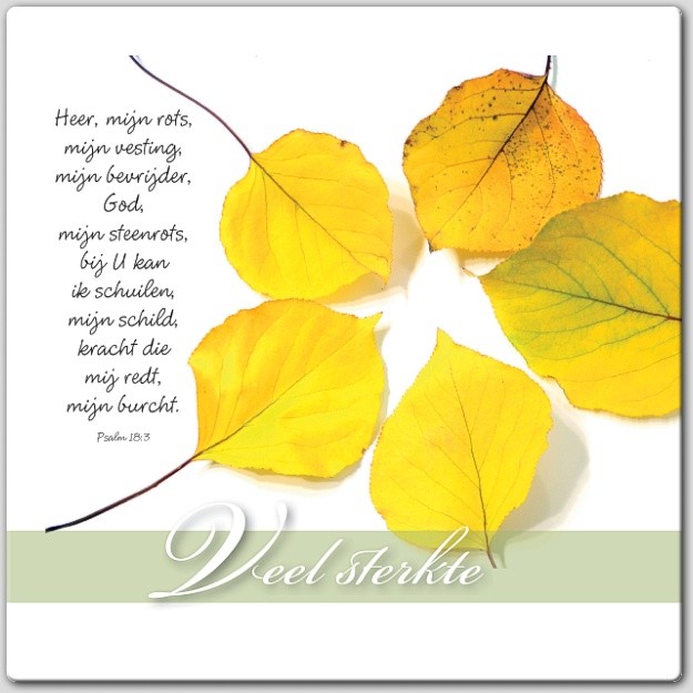 Wenskaart ‘Veel sterkte’ Prachtige wenskaarten met afbeeldingen uit de natuur en bijpassende Bijbelteksten. Verpakt in folie met envelop.