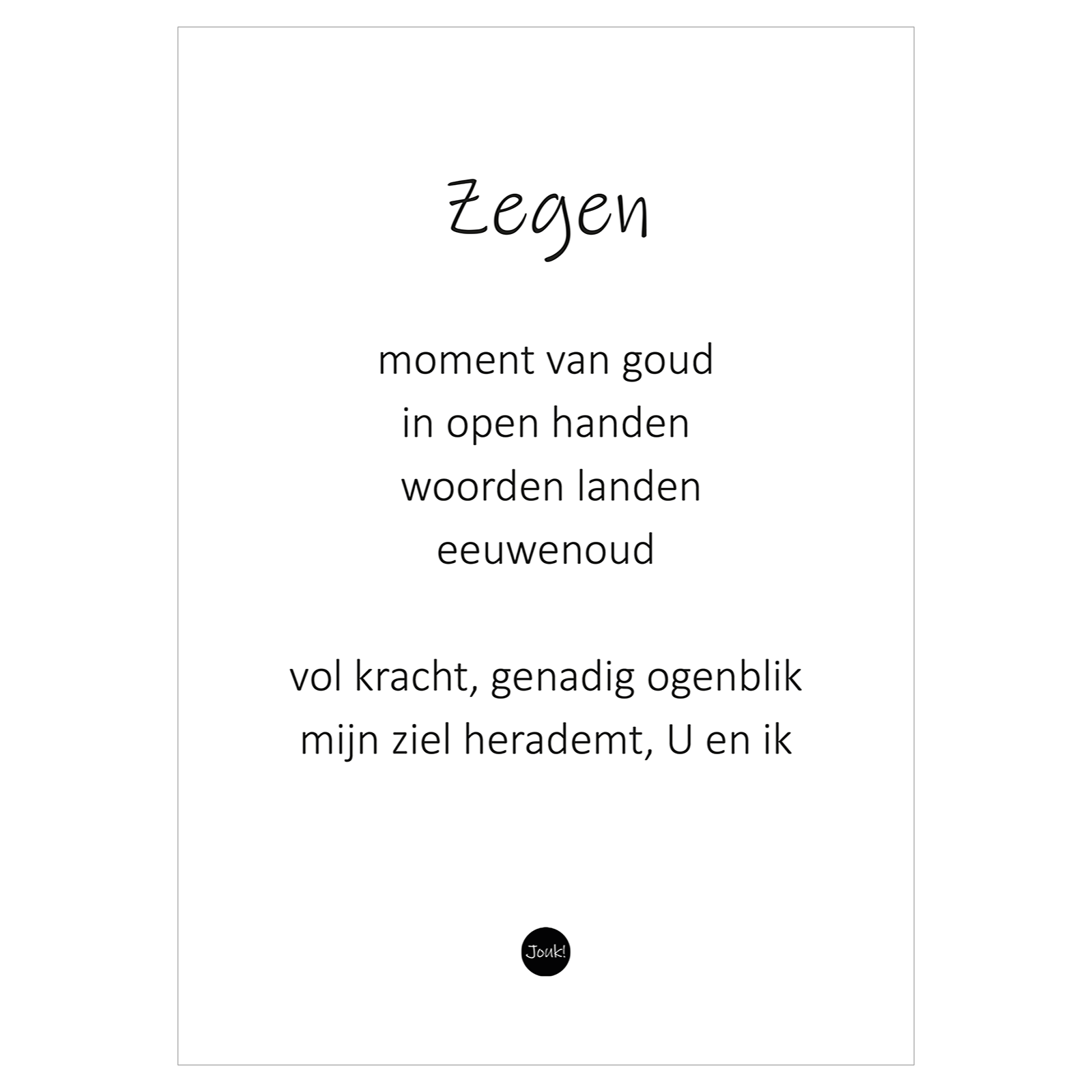 Enkele kaart met als thema Zegen. Leuk om neer te zetten of cadeau te doen ter gelegenheid van doop, belijdenis of opdragen.