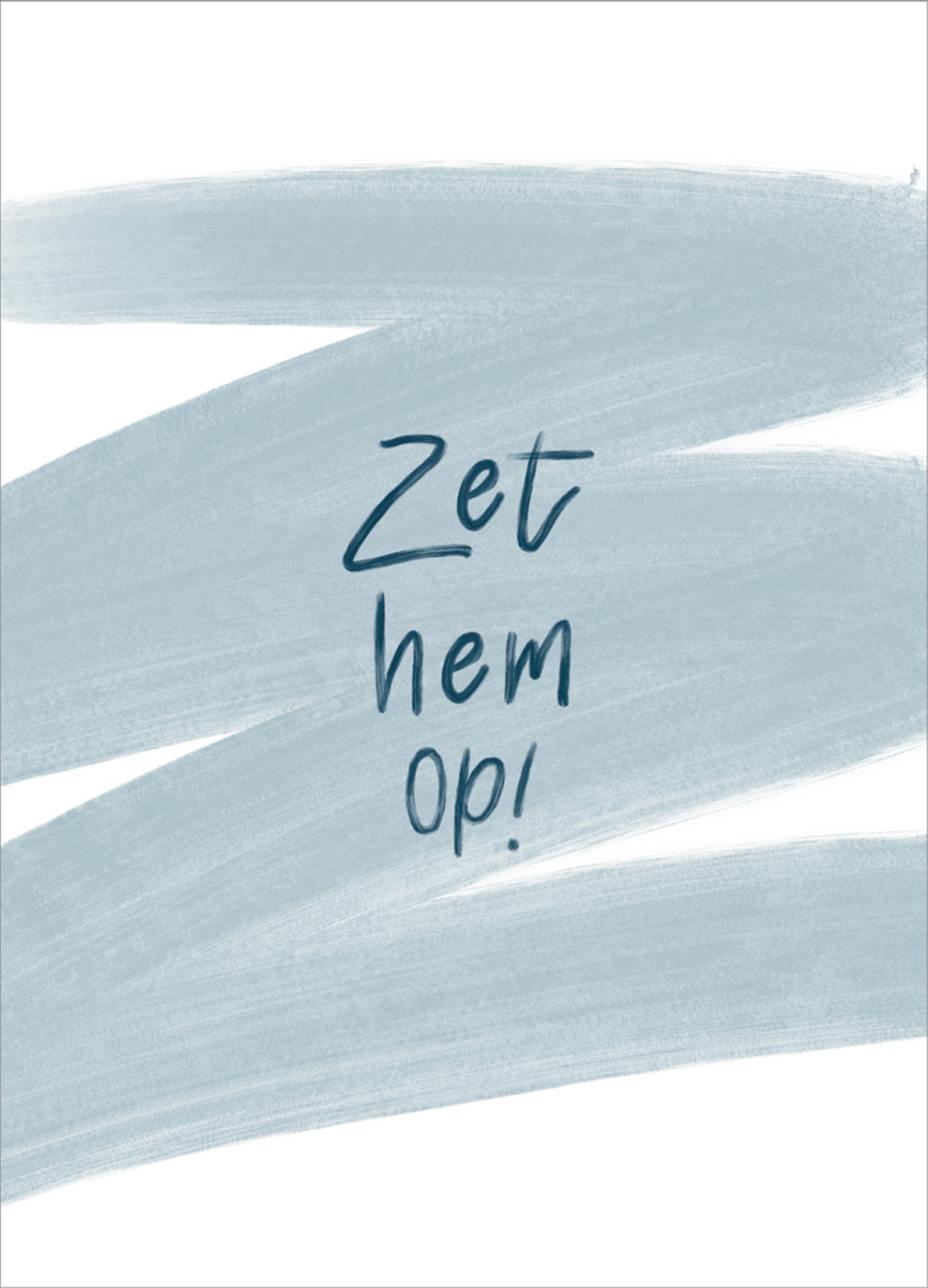 Een enkele kaart op dik papier met de tekst ‘Zet hem op’.
